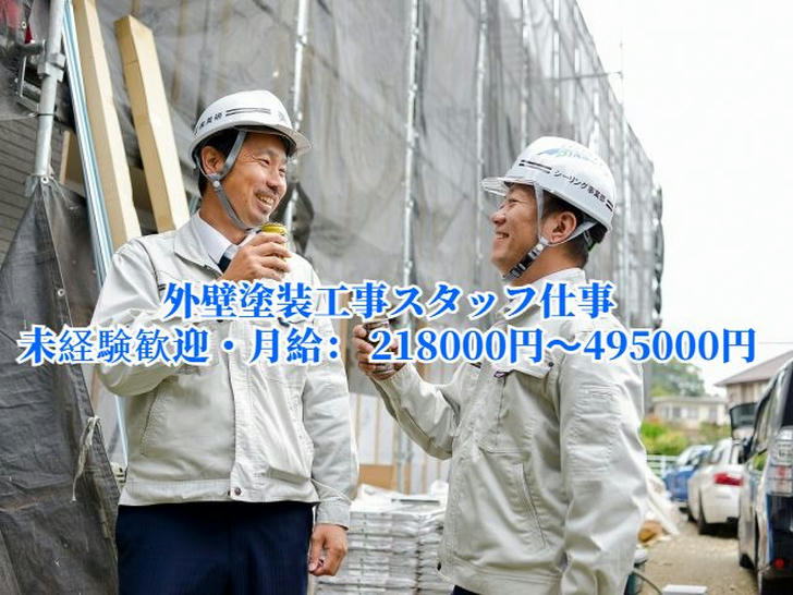 経験・資格は問いません。日本で働きたいですか?安定して楽な仕事をお探しですか?外壁塗装工事の作業スタッフ仕事:月給: 218000円〜495000円、履歴書不要、未経験も大丈夫、学歴不問、年齢不問ブランクのある方も歓迎します。勤務時間月~土曜日//9:00-18:00、保険一式完備。